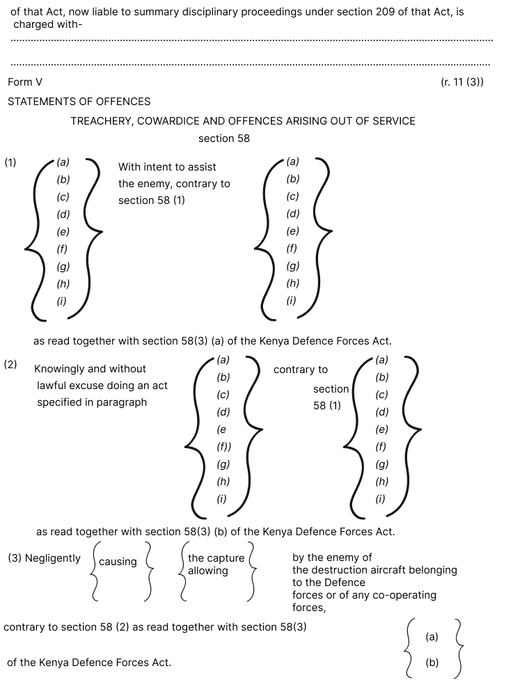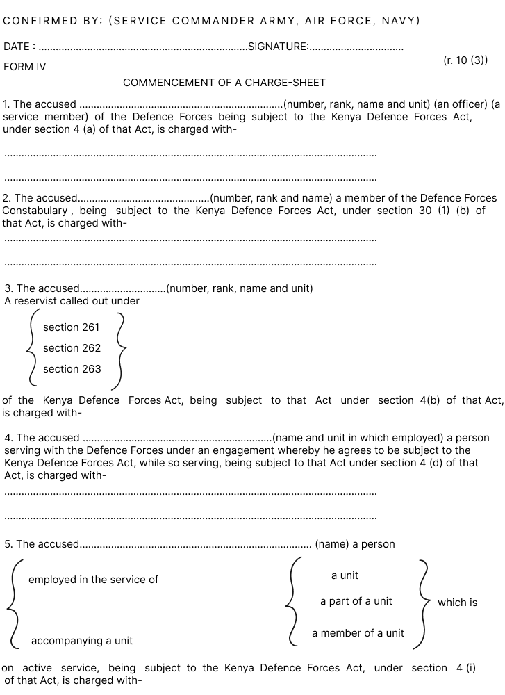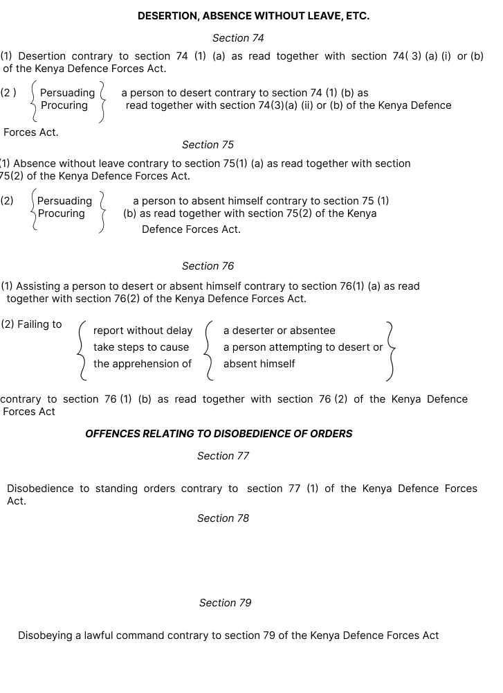 Standing orders on implementation of Kenya Defence Forces Act, governance, organization, discipline, administration of pay, etc.
