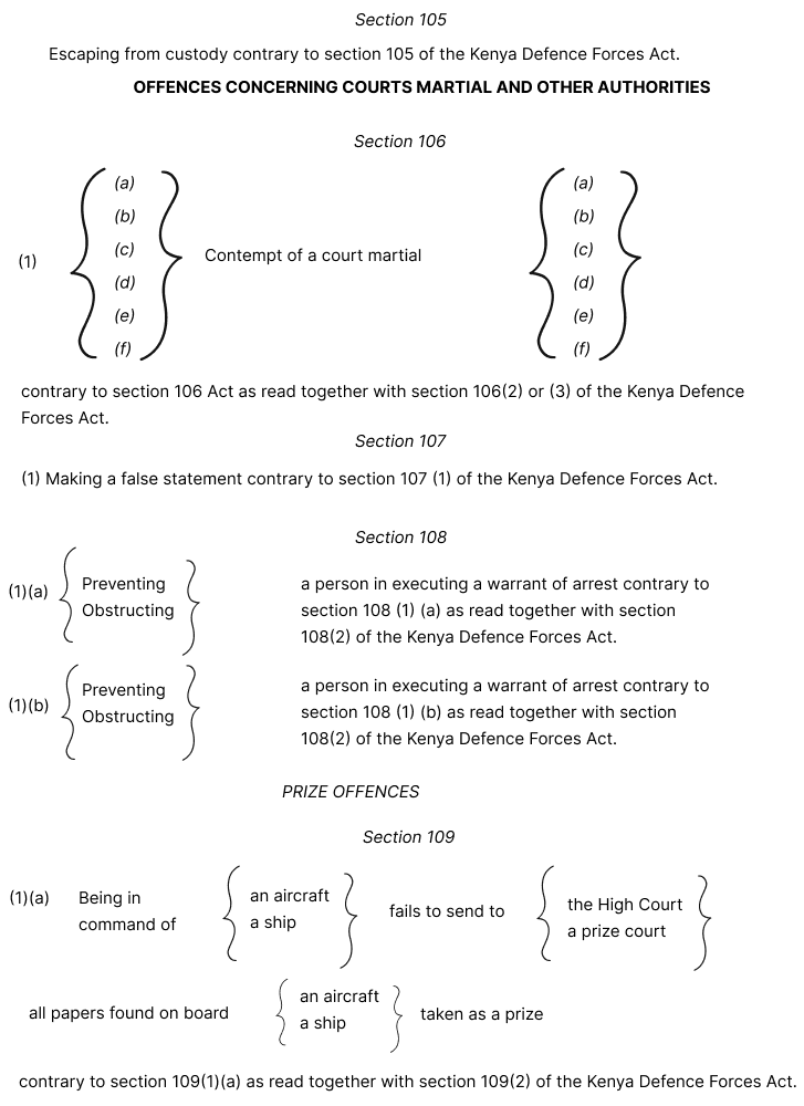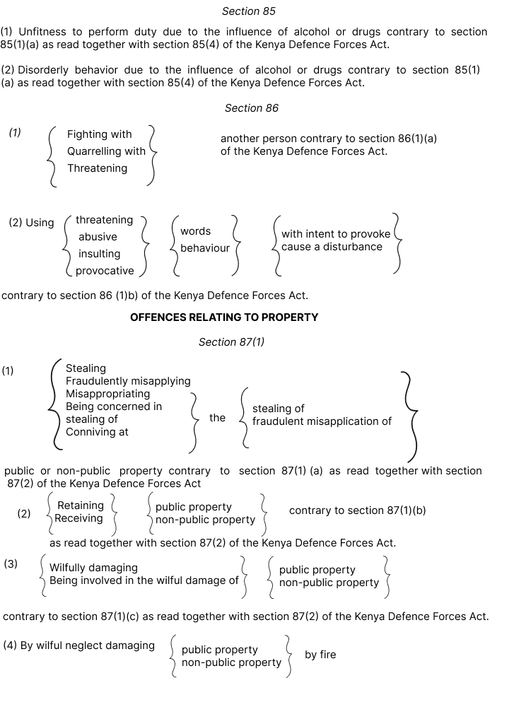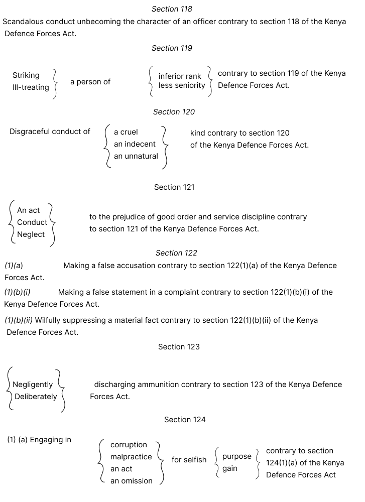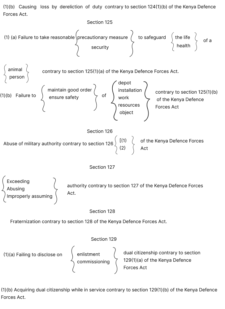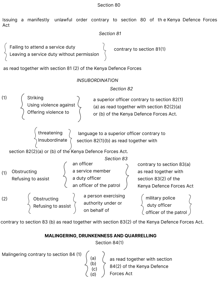 Pursuant to the provisions of section 305A of the Act, the Chief of Kenya Defence Forces or the Service Commander, in respect of his or her Service, may make general, special, routine and standing orders with respect to the following matters—
