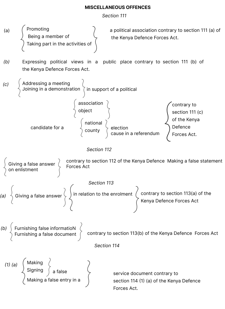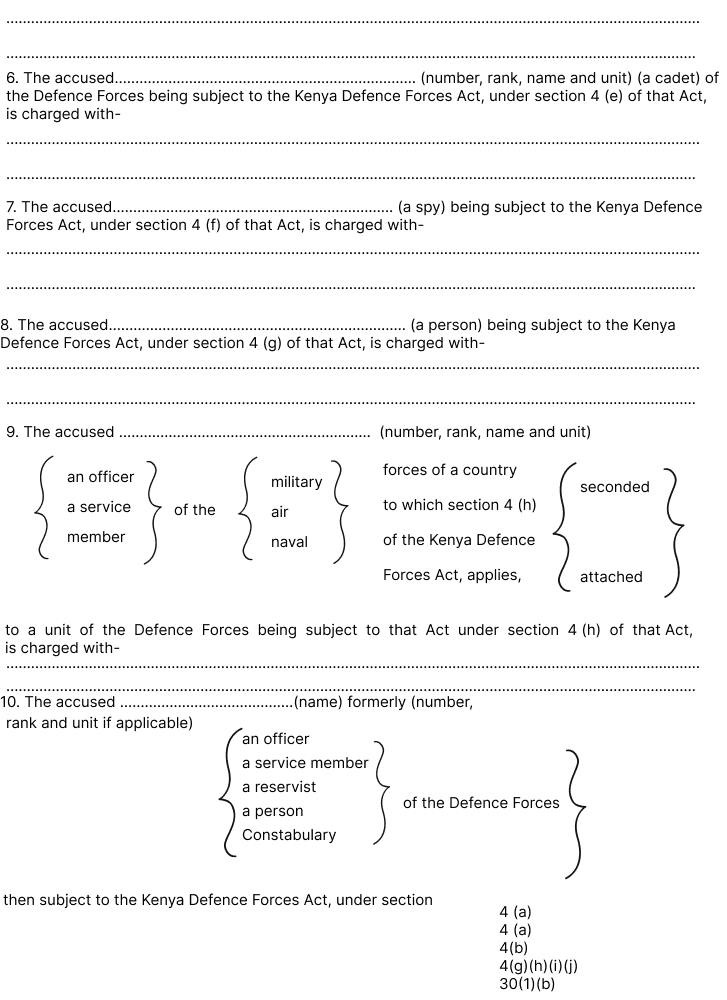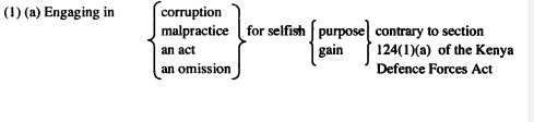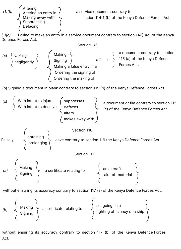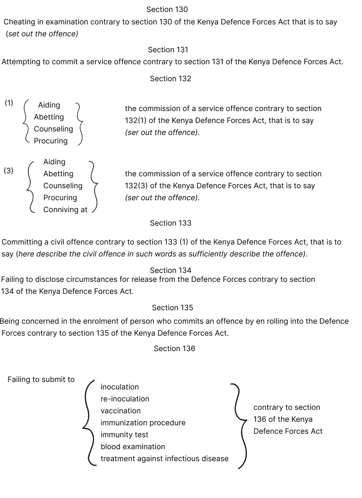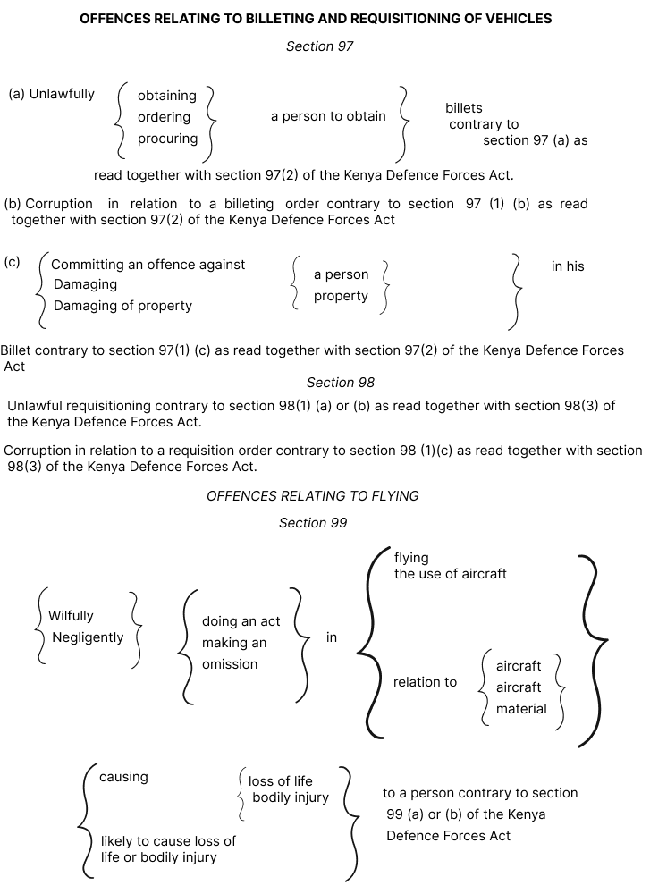 Pursuant to the provisions of section 305A of the Act, the Chief of Kenya Defence Forces or the Service Commander, in respect of his or her Service, may make general, special, routine and standing orders with respect to the following matters—