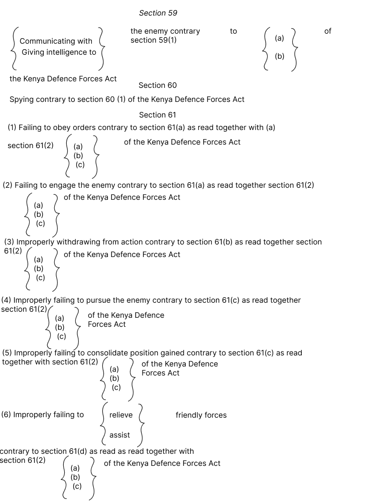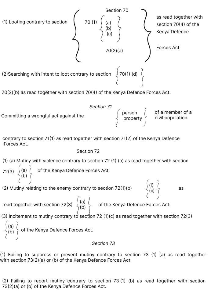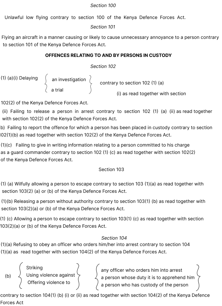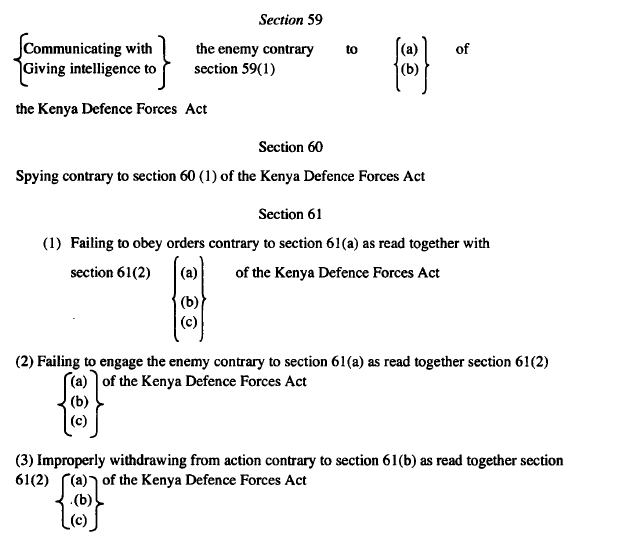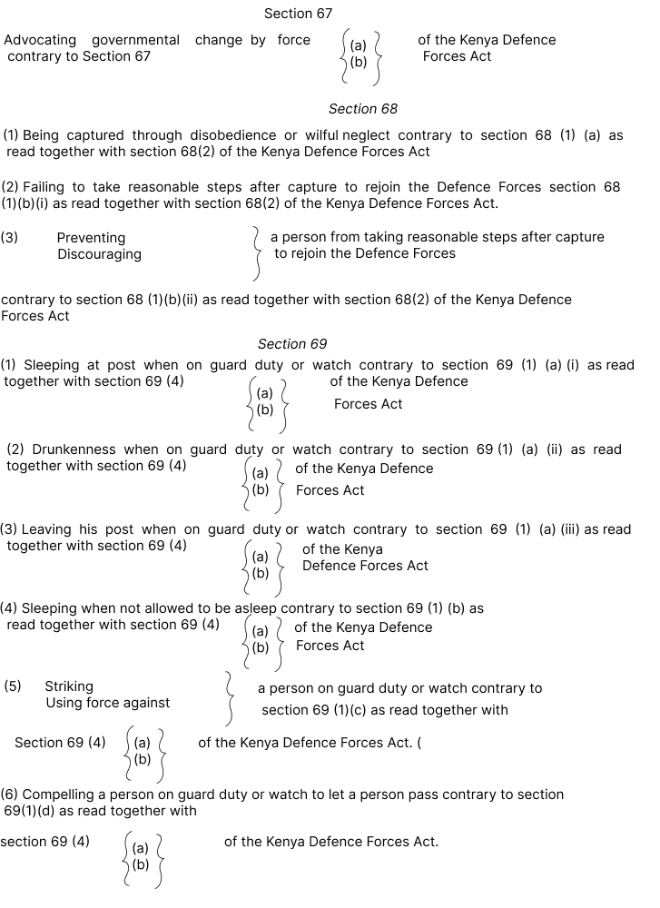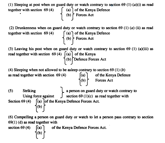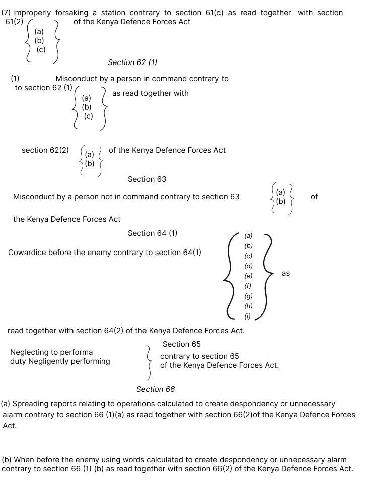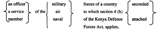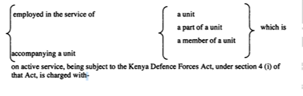 In paragraph (1), the reference to a member of the Kenya Defence Forces belonging or being attached to or serving with a unit or detachment, includes a reference to a civilian employee being employed in the service of that unit or detachment or of any part or member thereof or accompanying that unit or any part thereof.