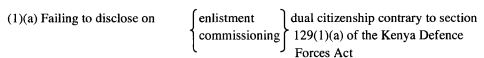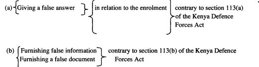 CERTIFICATE UNDER SECTION 144(1) OF THE KENYA DEFENCE FORCES ACT
