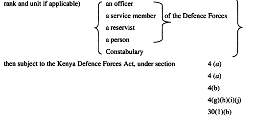 CERTIFICATE UNDER SECTION 144 (2) OF THE KENYA DEFENCE FORCES ACT