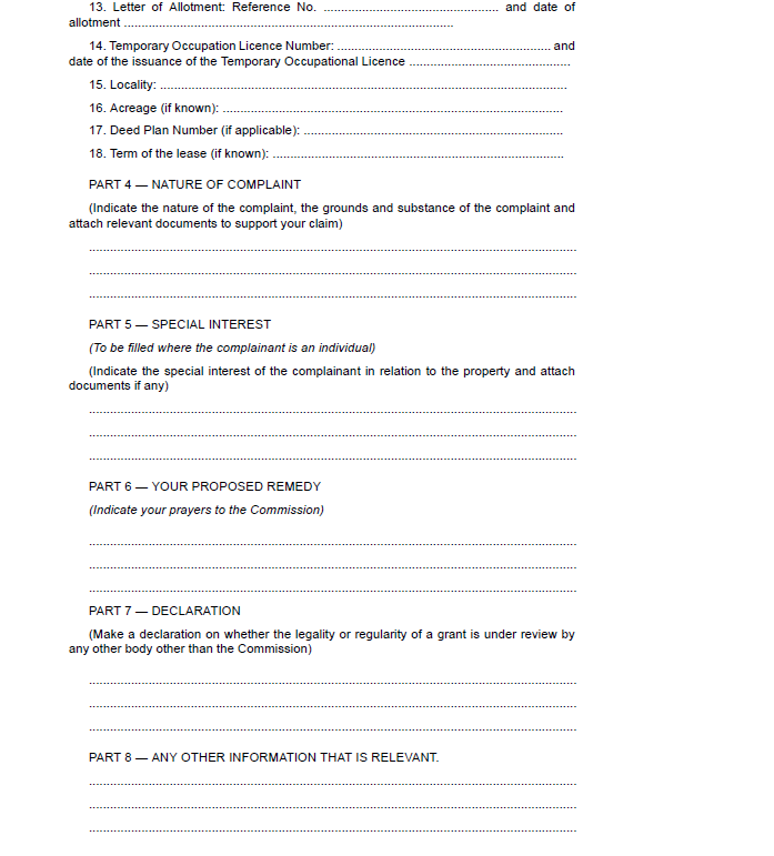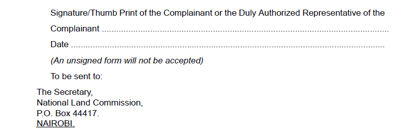 The national government, a county government, community, or an individual may pursuant to section 14(1) present a complaint to the Commission in Form NLC01 set out in the First Schedule.