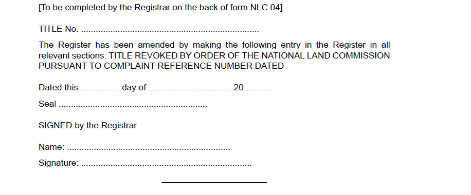 The Commission hereby acknowledges receipt of your Historical Land Injustice claim dated the .................. day of ....................... 20 .............. which is under consideration.