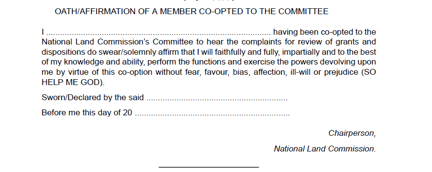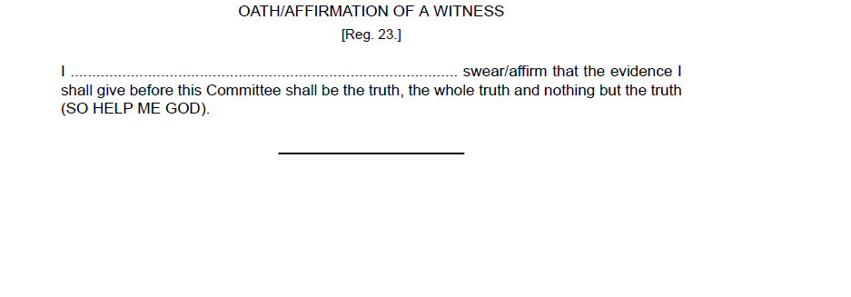 OATH/AFFIRMATION OF A MEMBER CO-OPTED TO THE COMMITTEE