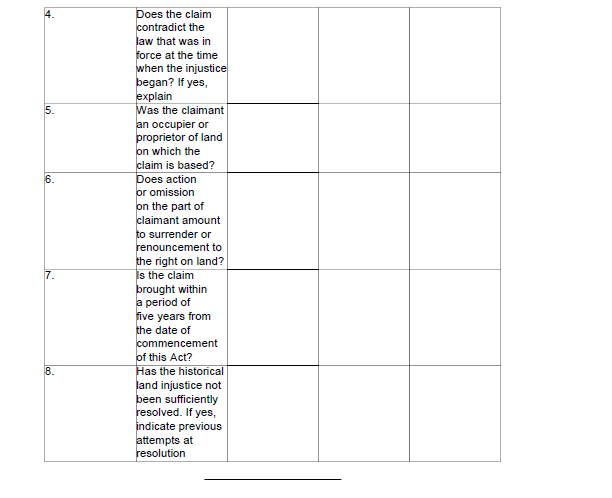 Has the historical land injustice not been sufficiently resolved. If yes, indicate previous attempts at resolution