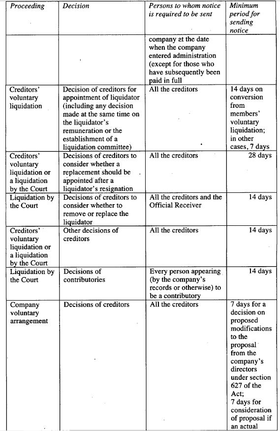 14 days on conversion frommembers' voluntary liquidation;in other cases, 7 days