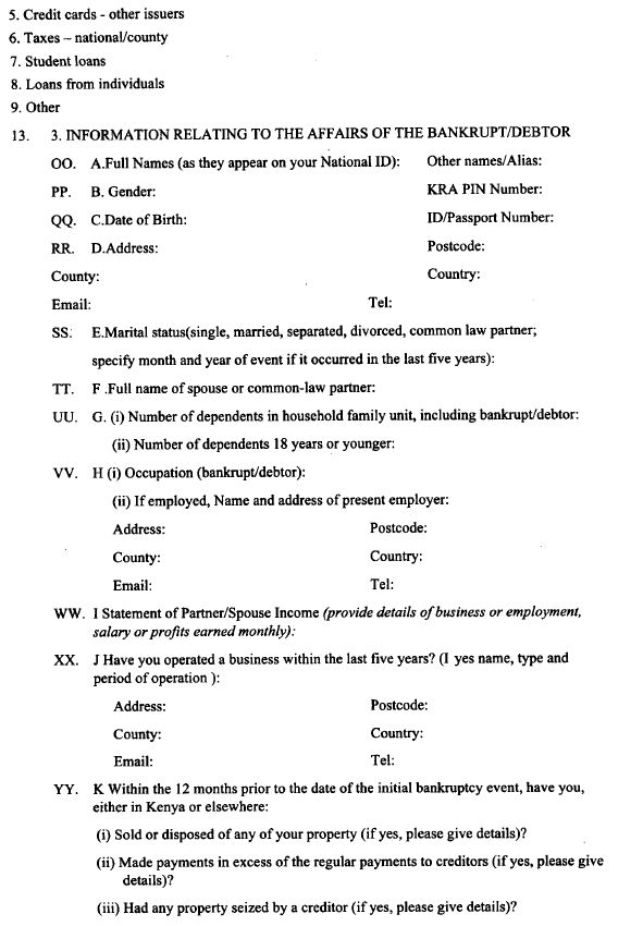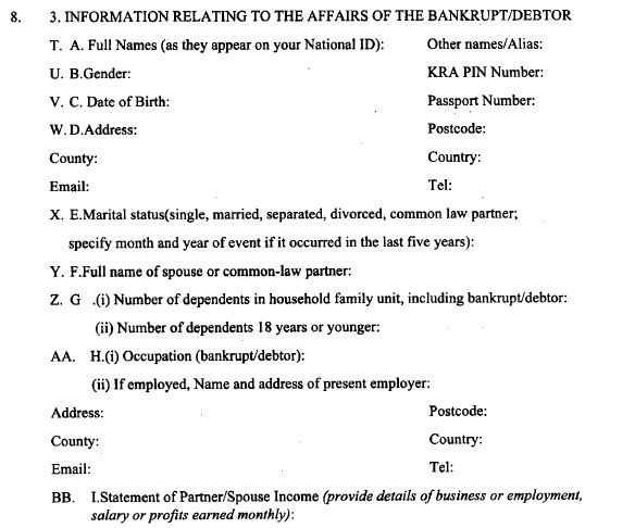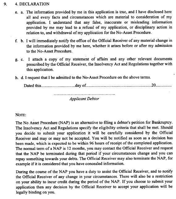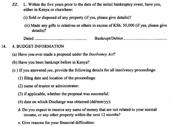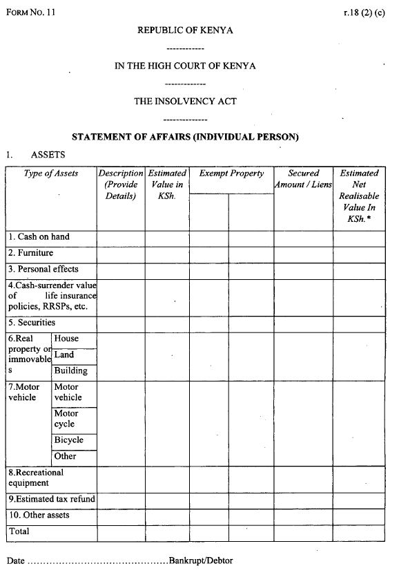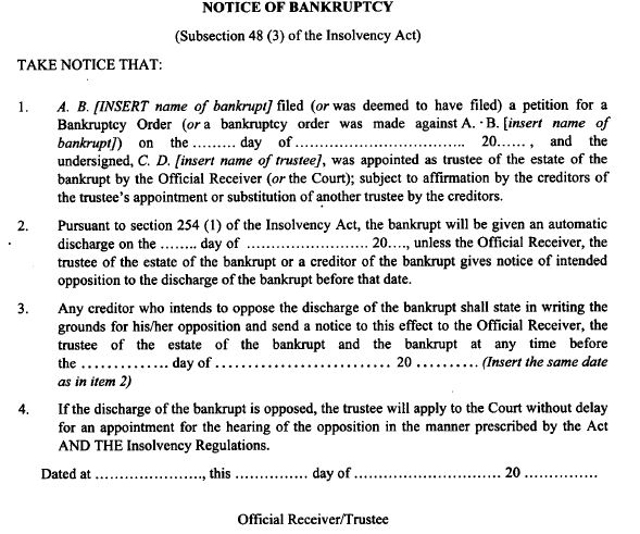 Bankrupt to lodge statement of financial position with bankruptcy trustee