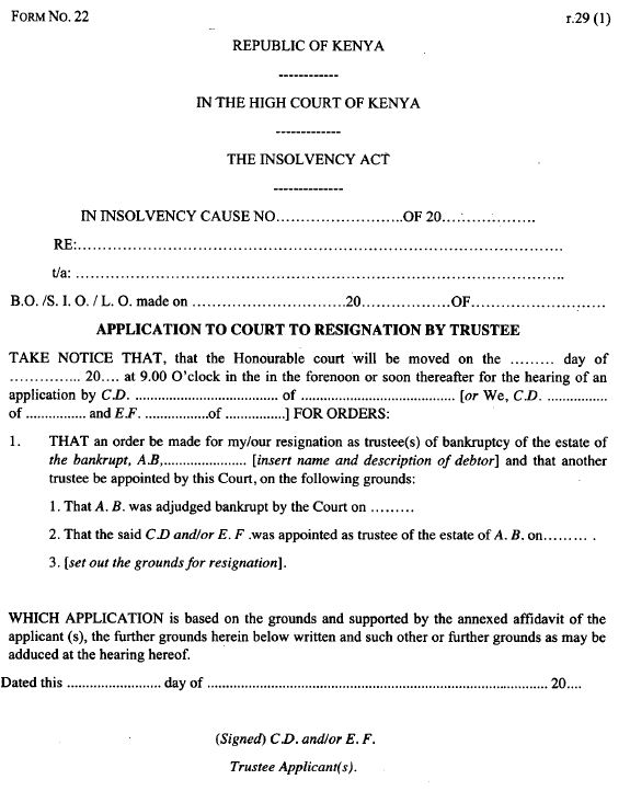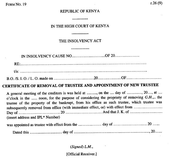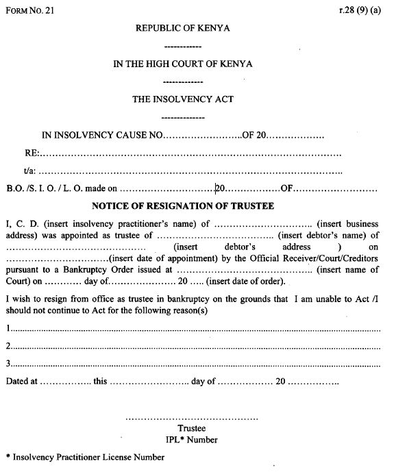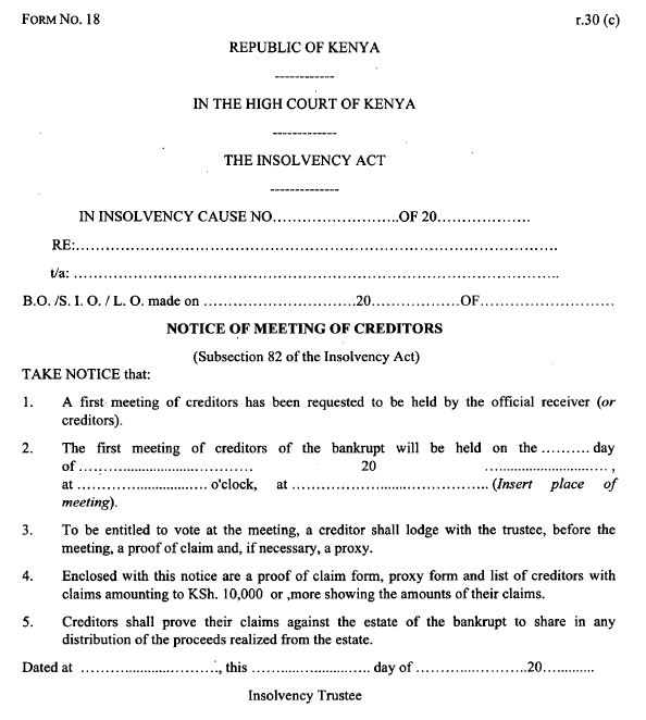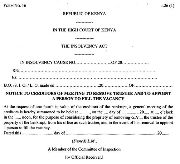 Creditors' meeting to receive bankruptcy trustee's resignation