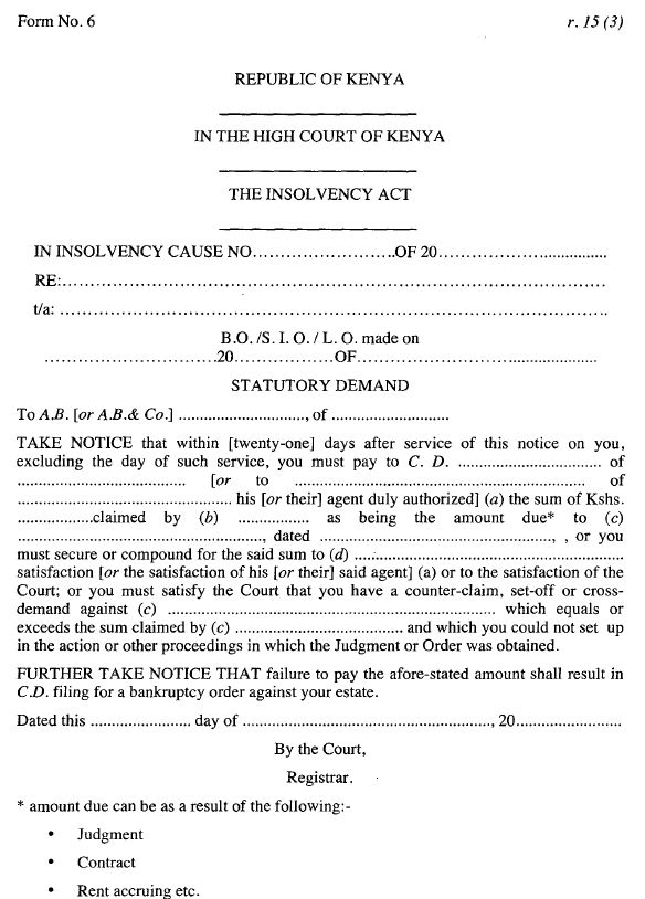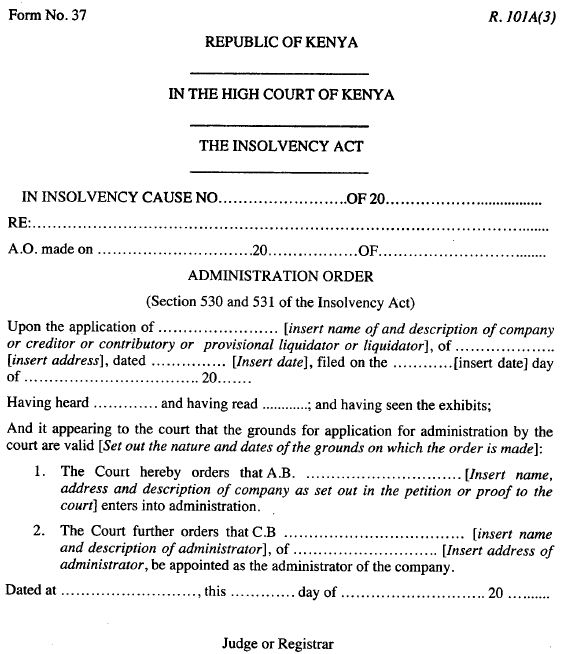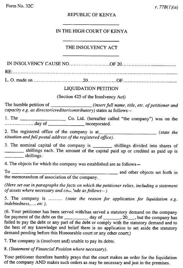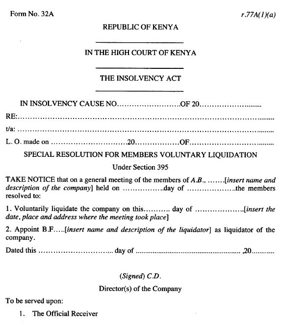 in the case of a company incorporated Kenya, in accordance with the Companies Act (Cap. 53); or
