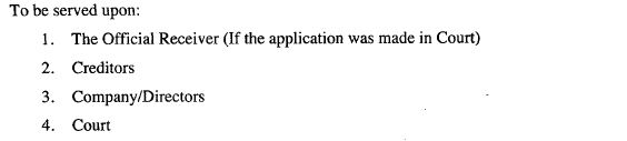 The court shall endorse the copies of the schedule with the date on which the documents were filed and deliver three copies of the endorsed schedule to the directors and an order of the court in Form 38 to the Regulations recognising the moratorium has come into effect