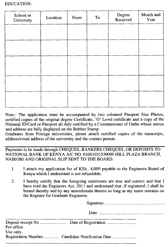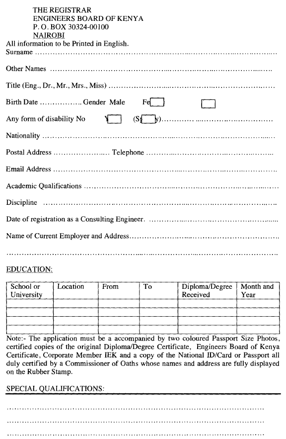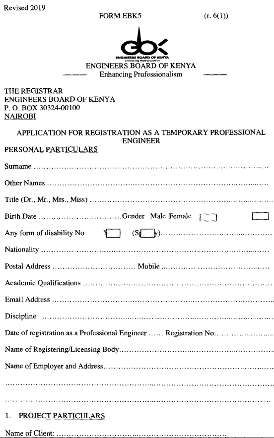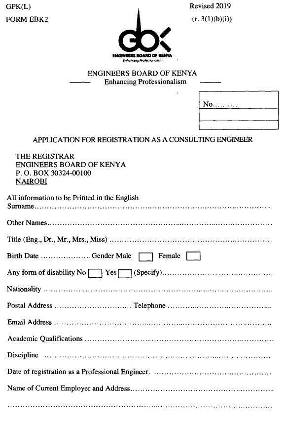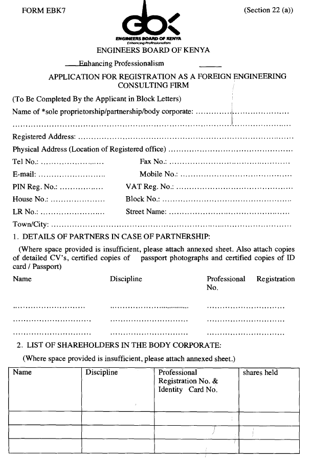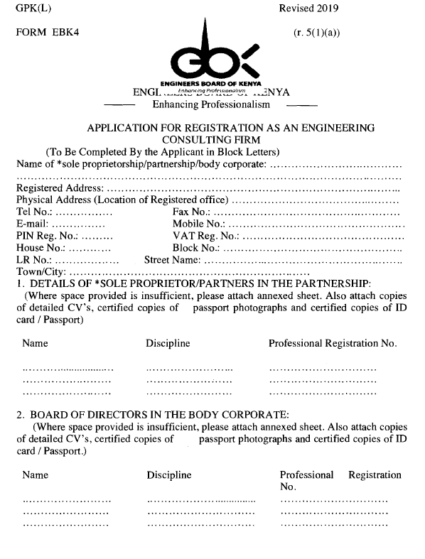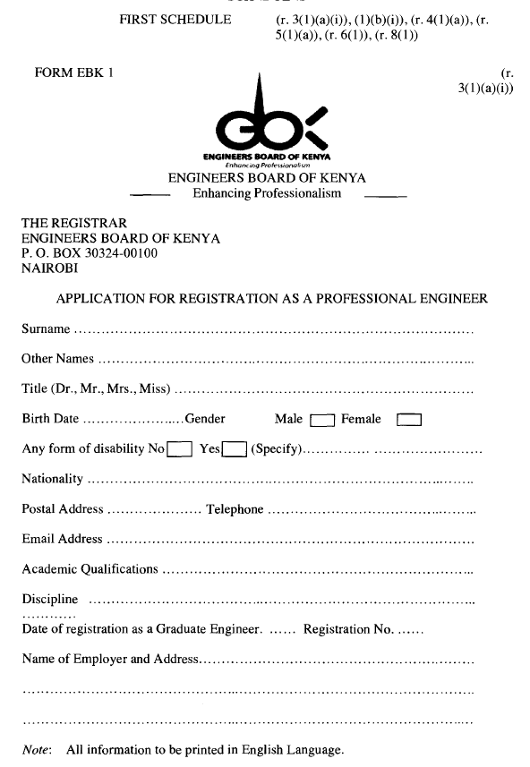 submit an application for registration in FORM EBK 2 set out in the First Schedule; |