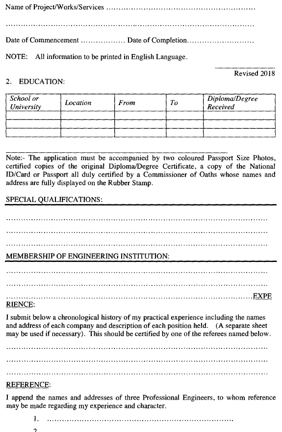 A person who wishes to be registered as a graduate engineer under section 18 of the Act shall —