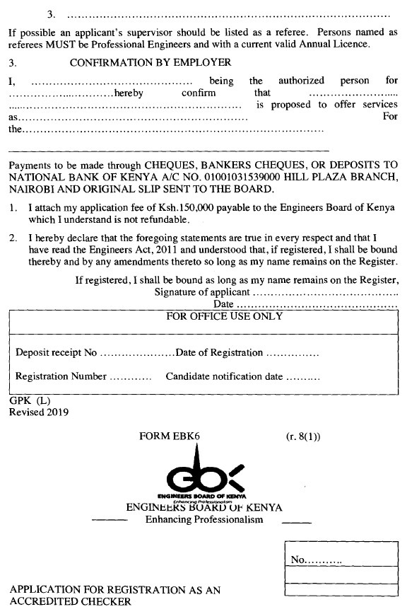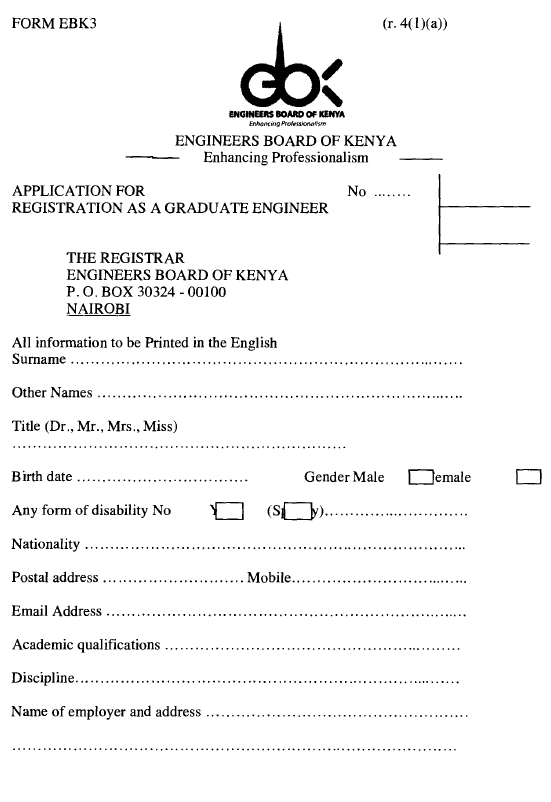 submit an application for registration in FORM EBK 3 set out in the First Schedule;